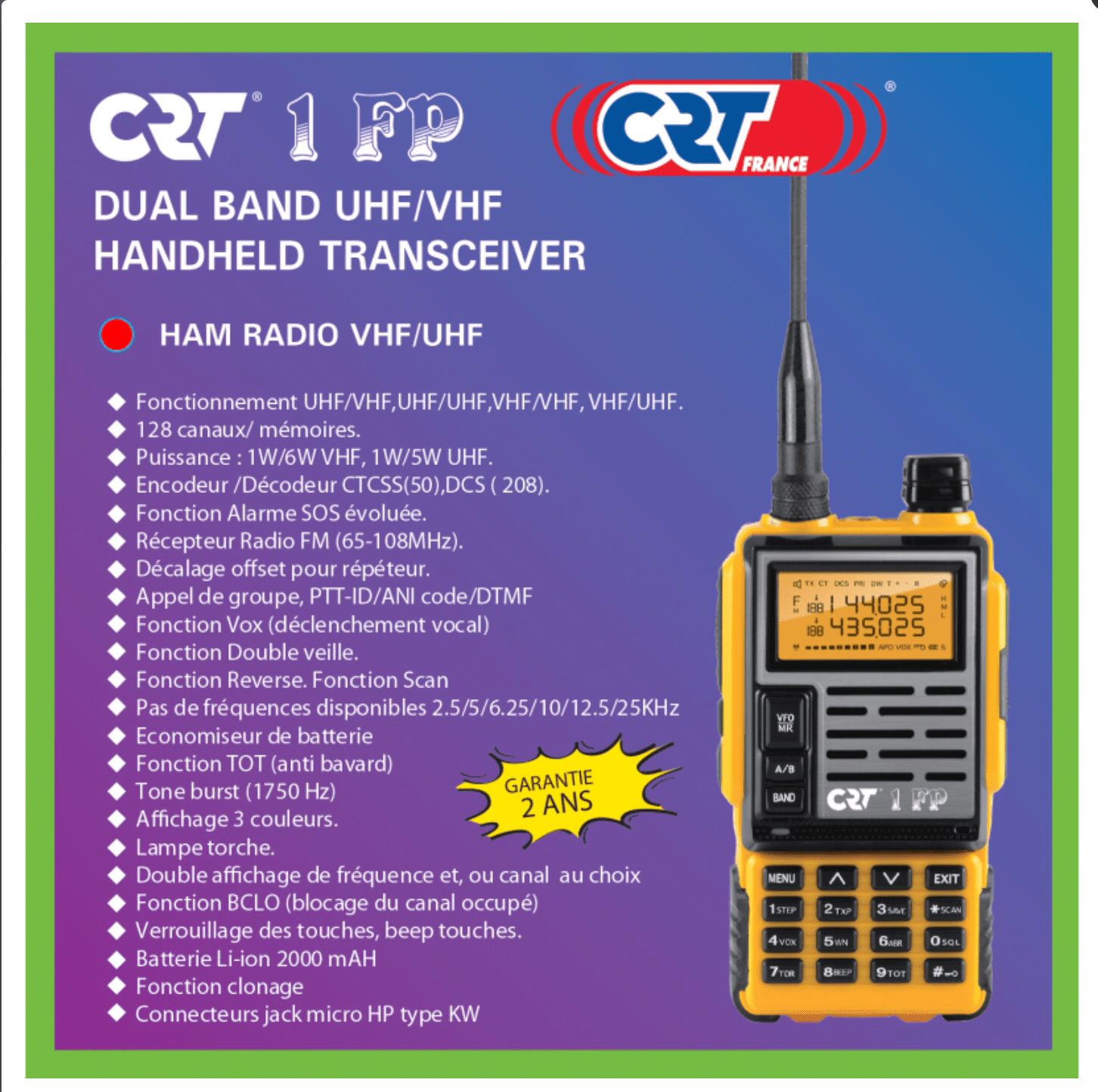 Seems CRT in France are busy. Today they’ve announced the CRT 1 FP which will be available on the 15th July and can be bought from dealers and also via the webshop. Looks interesting with its 6w VHF and the 6.25Khz step for the PMR men or UHF CB guys amongst us. More about this new radio hopefully soon.